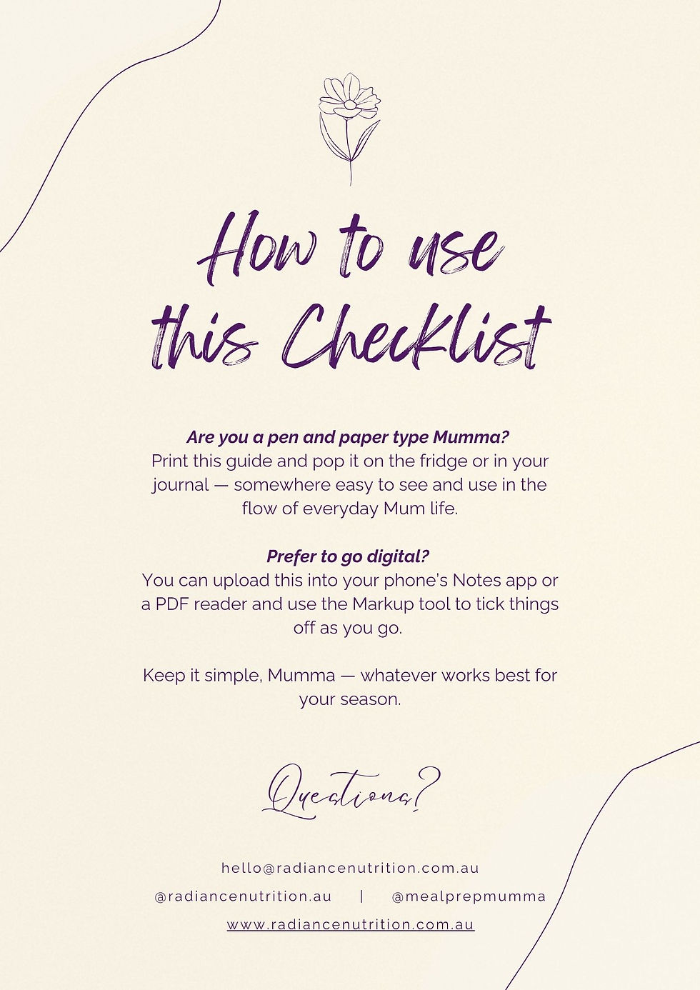 DIgital products curated by Holly at Radiance Nutrition to support postpartum women to live a thriving, empowered life!…